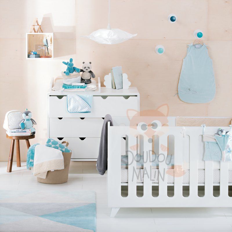 Noukie's Louis and Scott baby comforter tetinou penguin blue beige grey