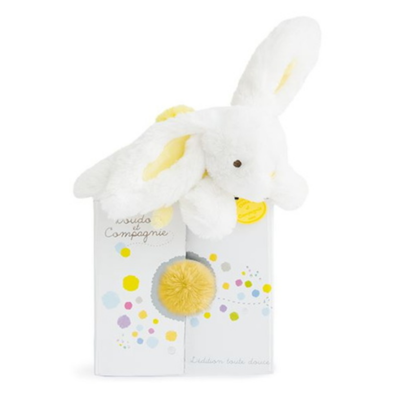 Doudou et compagnie Rabbit Coucou baby comforter white yellow