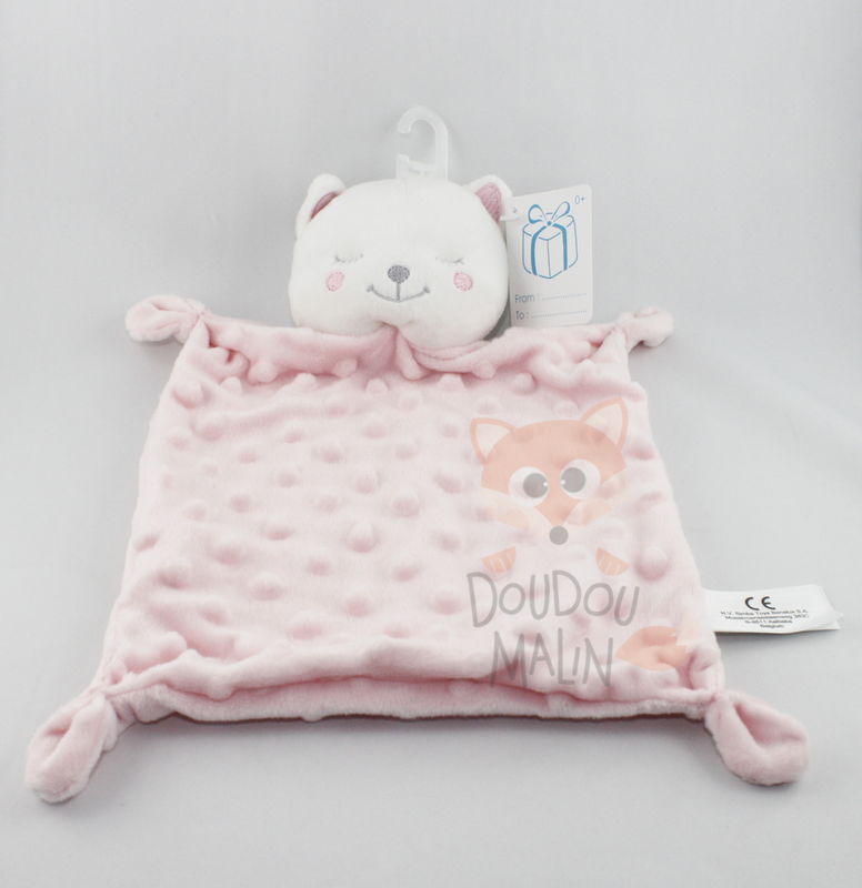 Doudou et compagnie J'aime mon doudou baby comforter pink cat