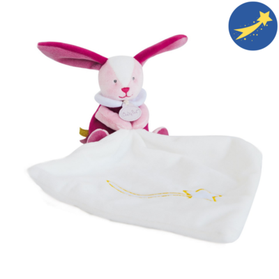 This luminescent pink rabbit baby comforter BABY'NAT will be the ideal baby companion to spend peaceful nights. This luminescent baby comforter will find very easily in the dark by baby.