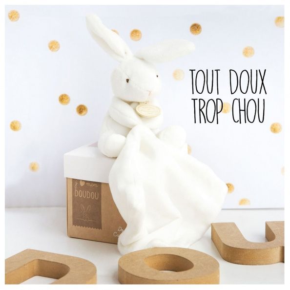 This cute white rabbit soft toy from DOUDOU ET COMPAGNIE will be the perfect baby companion for tender hugs. A pretty soft toy DOUDOU ET COMPAGNIE to offer without moderation.