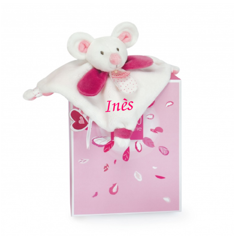 Doudou souris personnalisable vendu dans une jolie boîte. 20 cm