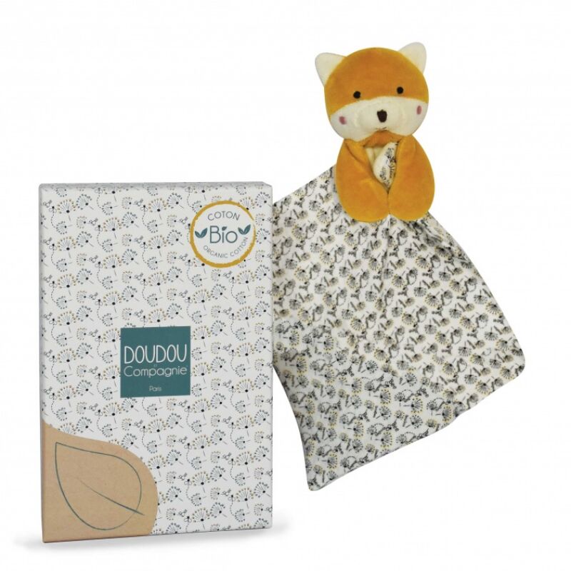 Doudou renard en coton bio de 20 cm. Vendu dans sa jolie boîte. Ensemble protégeons les abeilles.