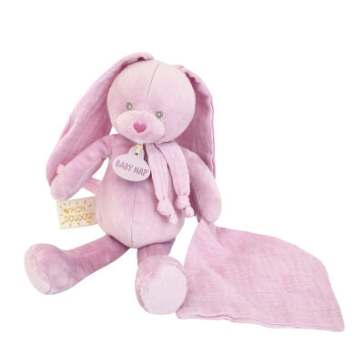 Baby'Nat - Lapin Lange - Plush with comforter purple 25 cm