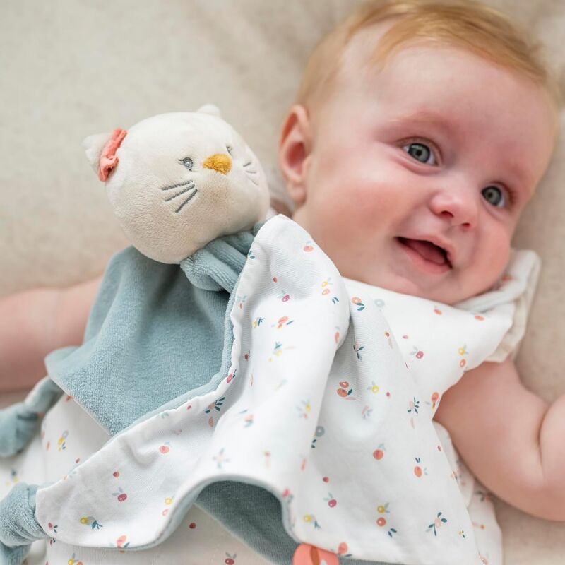 This cute blue cat baby comforter from NATTOU will be the ideal companion of baby to spend peaceful nights. Easy to catch, this soft cat baby comforter will accompany him/her from birth.