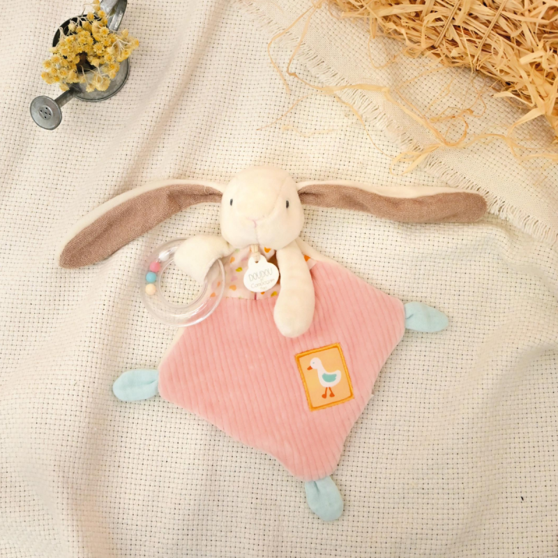 Doudou et compagnie - Rabbit Ciboulette - Comforter rattle pink 20 cm