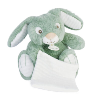 Baby'Nat - Malow the rabbit - Plush with comforter green 25 cm