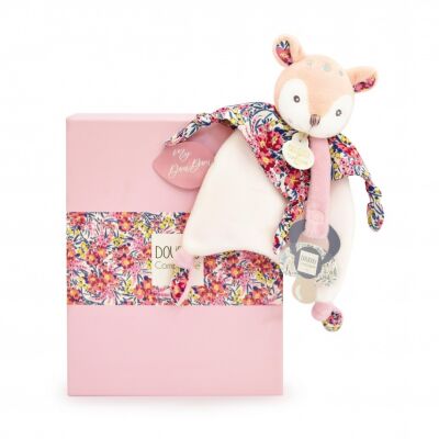 Doudou et compagnie - Boh'Aime - Comforter with rattle deer pink liberty 22 cm