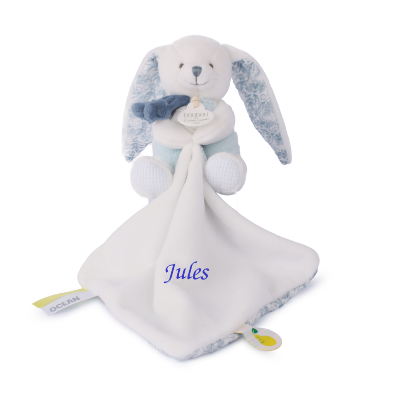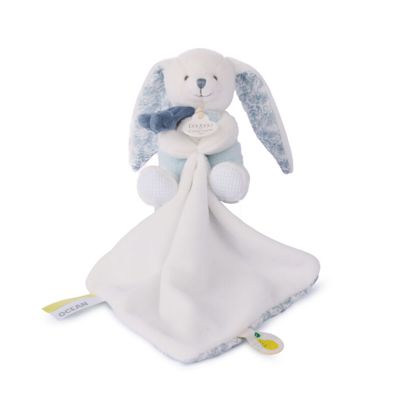 Doudou et compagnie - Rabbit Ocean - Plush with comforter blue white 22 cm