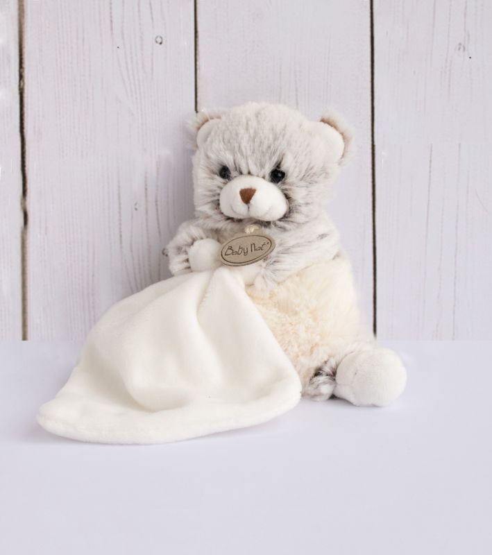 Doudou Malin Charly le chat Doudou beige blanc 30 cm