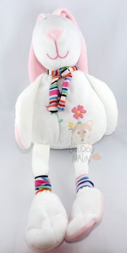 Mots d'enfants - Peluche Doudou lapin assis rose blanc fleur 25 cm