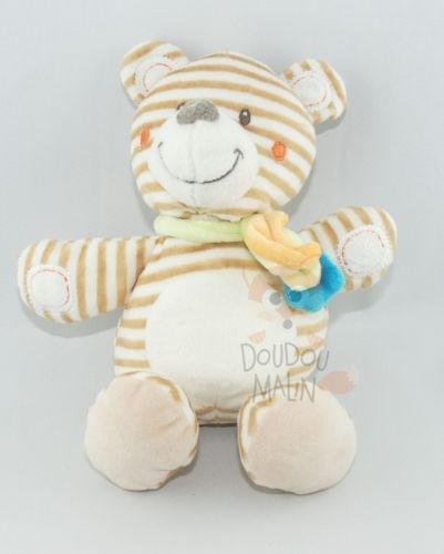 Nicotoy doudou ours rayé marron vert bleu blanc écharpe lune étoile