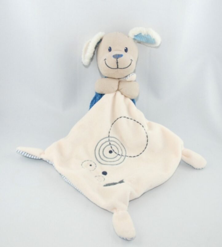 Pommette doudou mouchoir chien bleu beige gris poisson