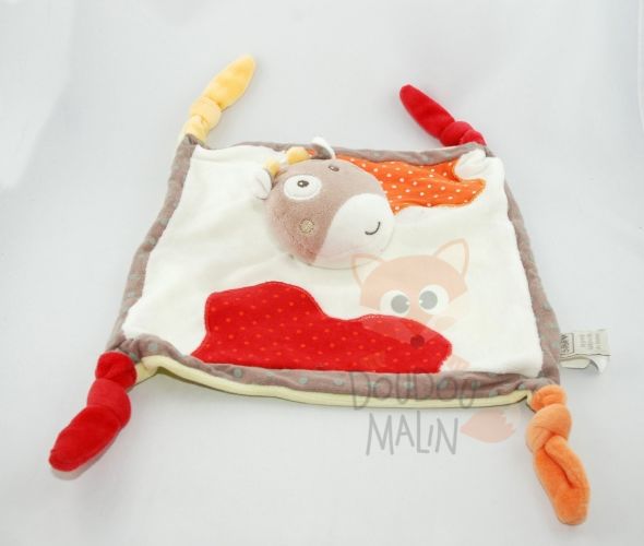 Bébé 9 doudou vache plat carré orange rouge marron blanc jaune pois