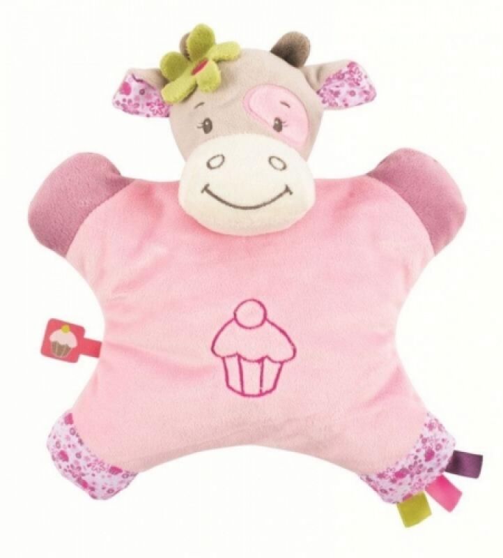 Baby''Nat - Pistache la vache - Peluche avec doudou rose 25 cm