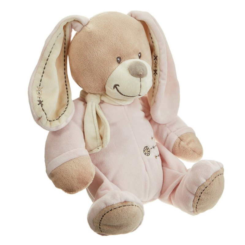 Cette jolie peluche lapin rose de la marque NICOTOY sera le compagnon idéal de bébé pour de tendres câlins. Une jolie peluche NICOTOY toute douce à offrir sans modération.