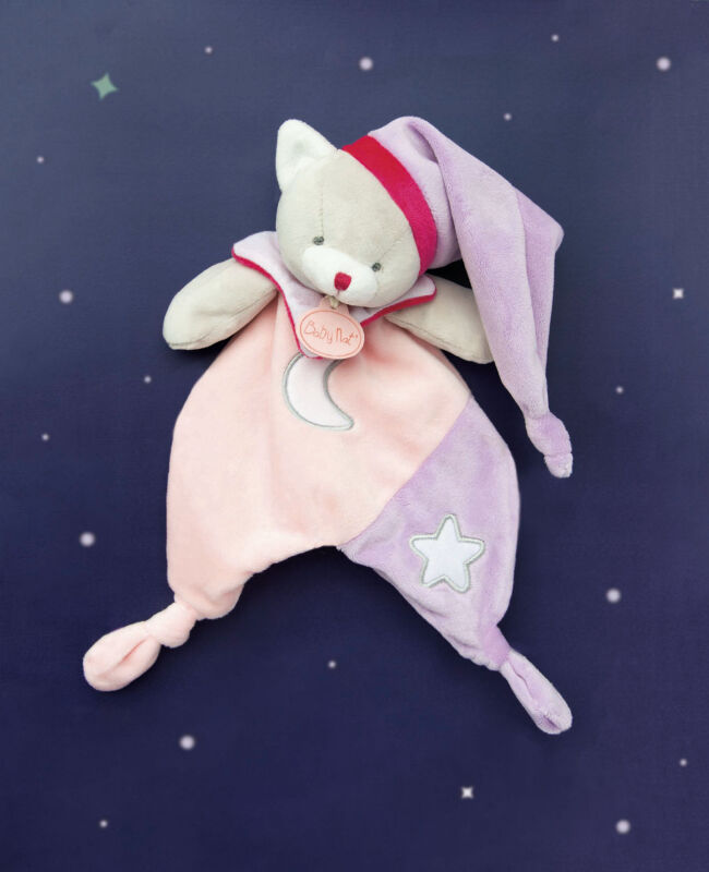 Baby'Nat - Les Luminescents Doudou mouchoir chat rose violet étoile