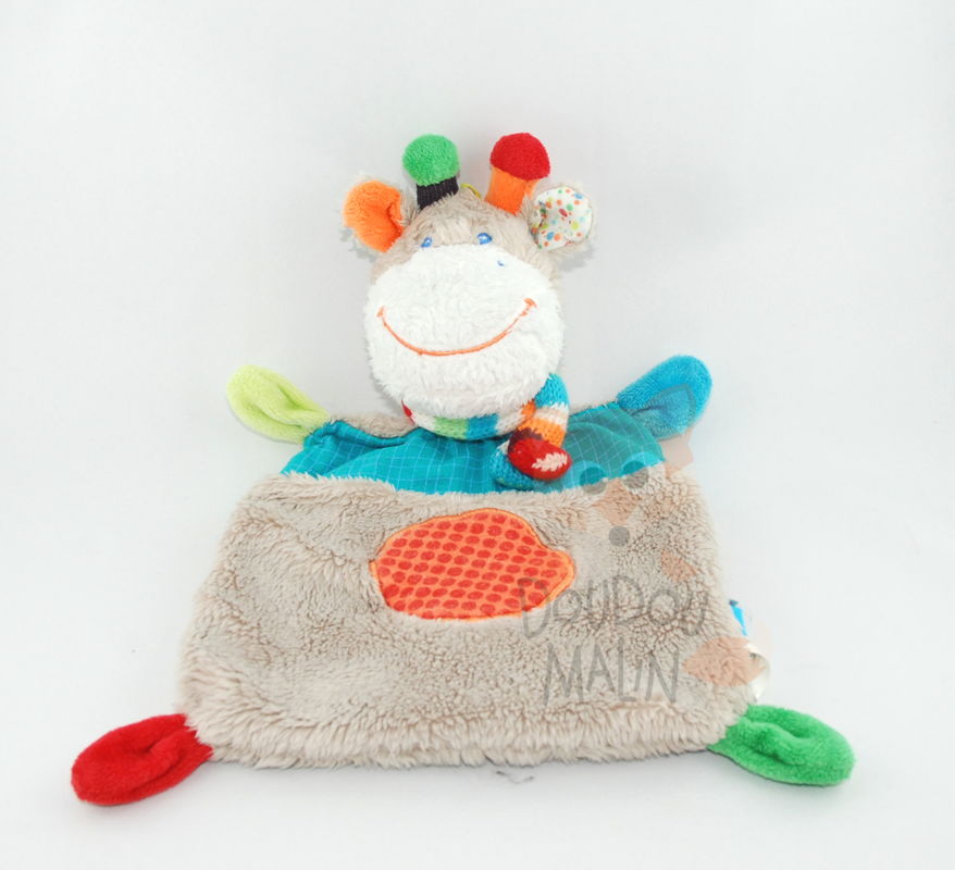 Nicotoy collection Zoé doudou girafe gris bleu vert rouge orange