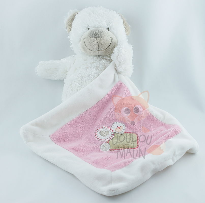 Nicotoy peluche ours blanc rose mouchoir coeur