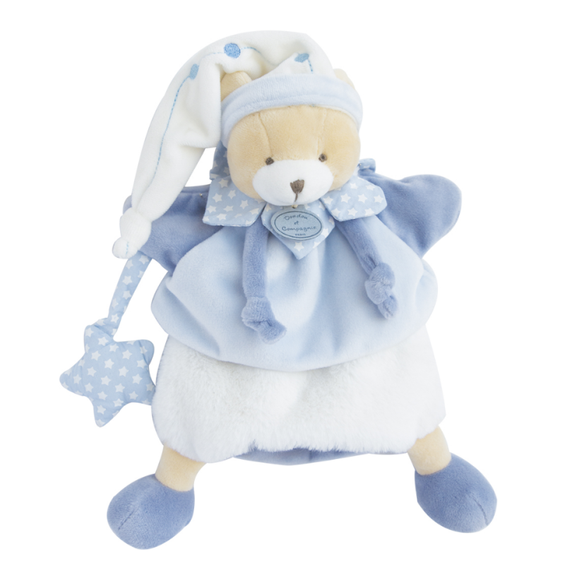 Doudou et compagnie - Marionnette - Petit Chou l'ours bleu blanc étoile