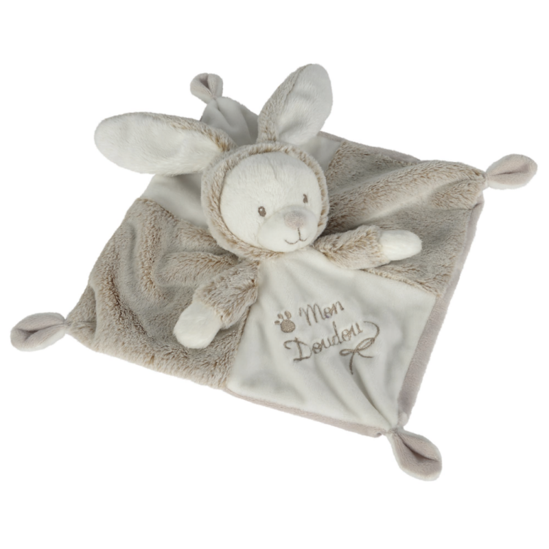 Nicotoy Laline nature Mon doudou mouchoir ours déguisé en lapin blanc gris