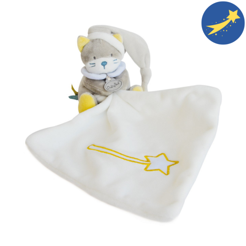 Baby'Nat - Les Comètes doudou mouchoir chat gris jaune étoile filante