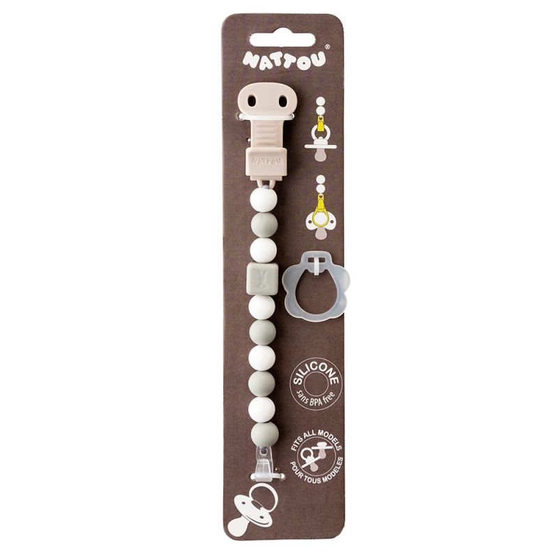 Attache-sucette compatible pour sucettes avec anneau ou sans anneau, en silicone garanti sans BPA.