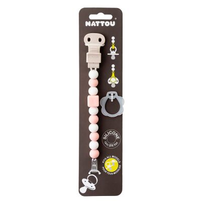 Nattou Attache-sucette silicone rose clair blanc