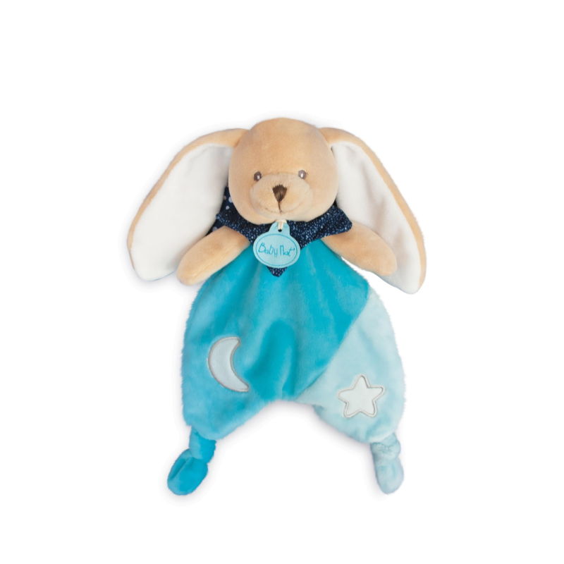 Baby'Nat - Les Luminescents Doudou plat lapin bleu étoile