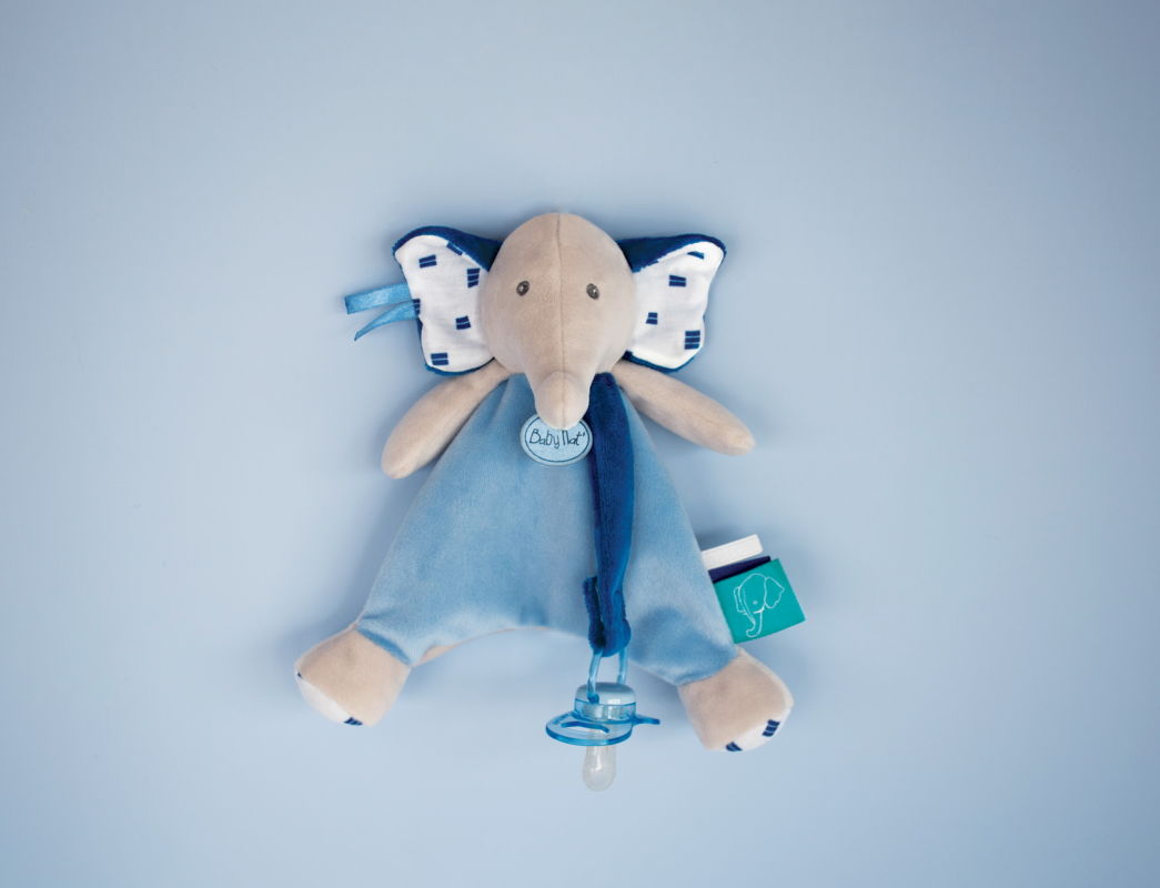 Baby'Nat - Edgar et Eglantine - Doudou Attache-sucette éléphant bleu 20 cm