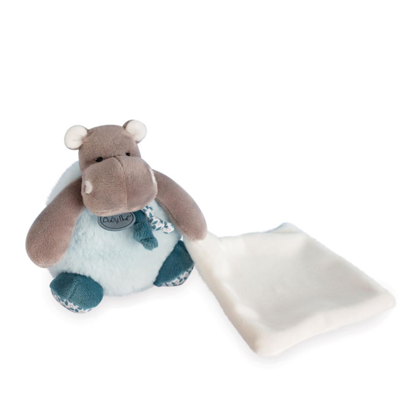 Baby'Nat - Bazile l'hippo - Doudou mouchoir bleu 25 cm
