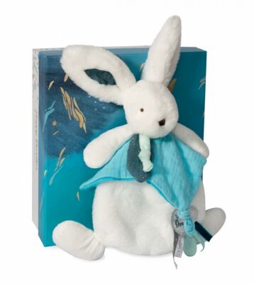 Caractéristiques : Lapin / Doudou plat / Bleu / Mixte / Avec une boîte