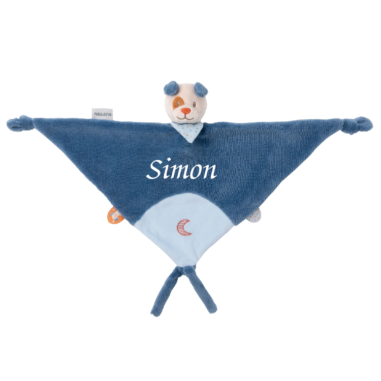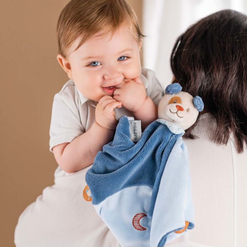 Ce joli doudou plat chien bleu de la marque NATTOU sera le compagnon idéal de bébé pour passer des nuits paisibles. Facile à attraper, ce doudou plat chien tout doux l'accompagnera dès sa naissance.