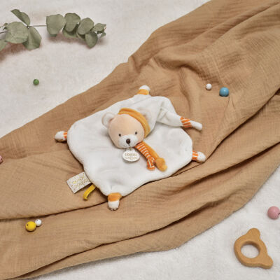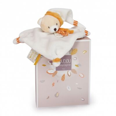 Caractéristiques : Ours / Doudou plat / Orange / Mixte / Avec une boîte
