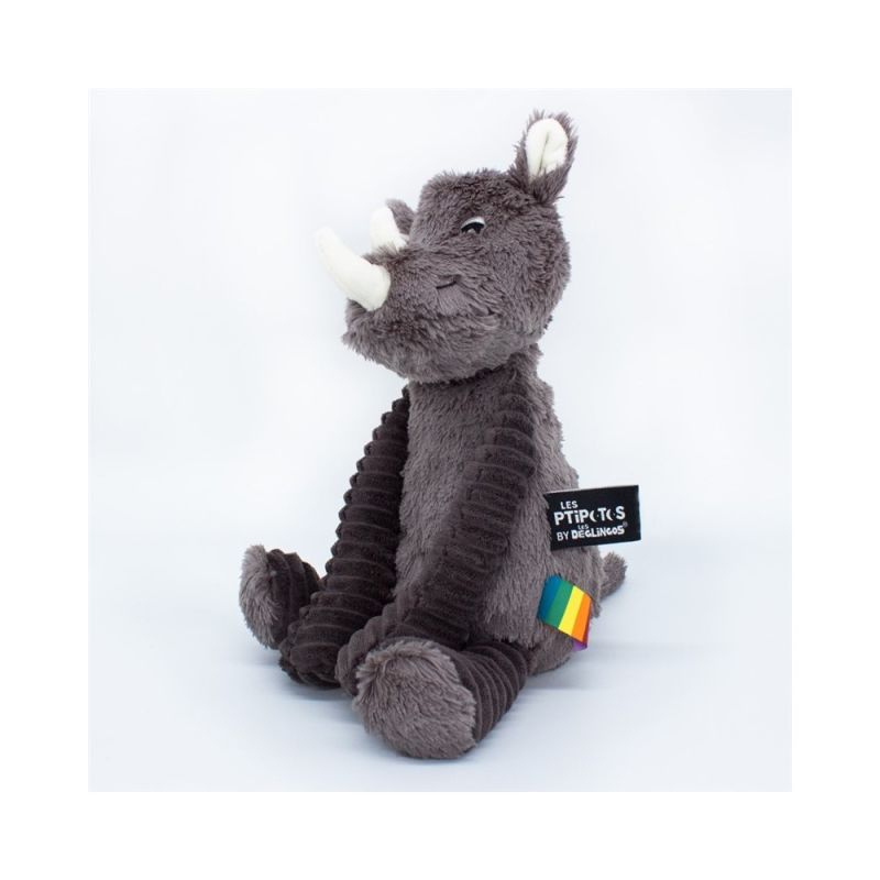 Cette jolie peluche rhinocéros gris de la marque LES DEGLINGOS sera le compagnon idéal de bébé pour de tendres câlins. Une jolie peluche LES DEGLINGOS toute douce à offrir sans modération.