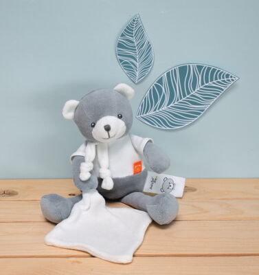 Baby'Nat - Coton BIO - Peluche avec doudou ours Gris 30 cm