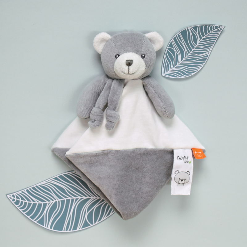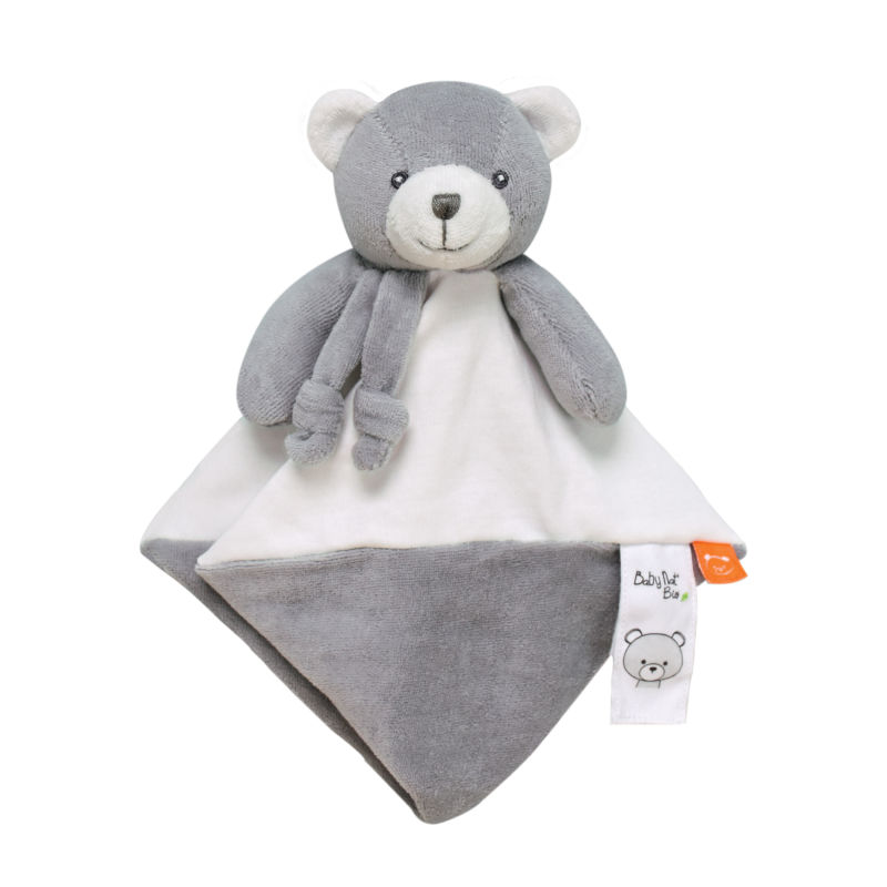Caractéristiques : Ours / Doudou plat / Gris / Mixte / Coton BIO
