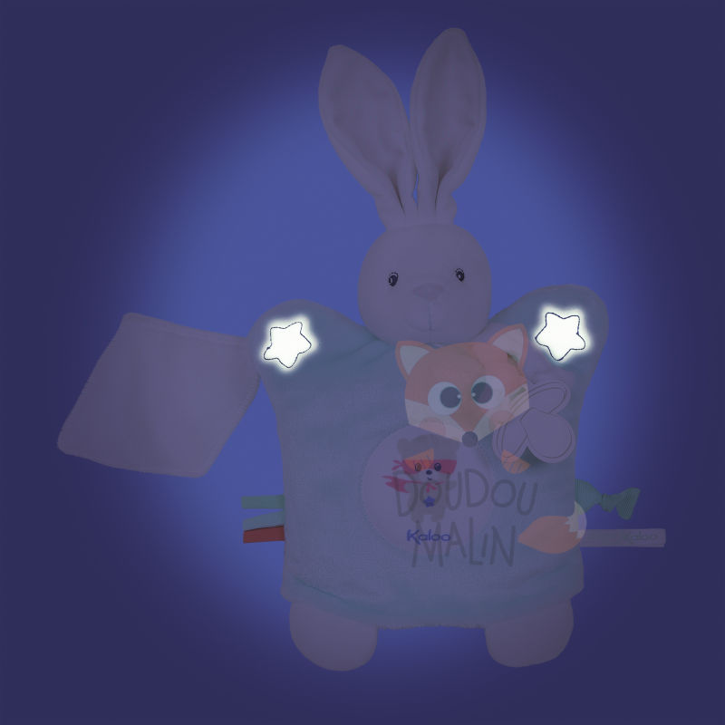 Doudou marionnette lapin qui brille dans le noir ! 25 cm