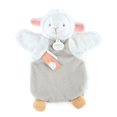 Doudou marionnette Agneau / mouton blanc Doudou et compagnie toute douce de 25 cm.