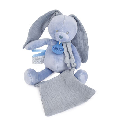 Baby'Nat - Lapin Lange - Peluche avec doudou bleu 25 cm
