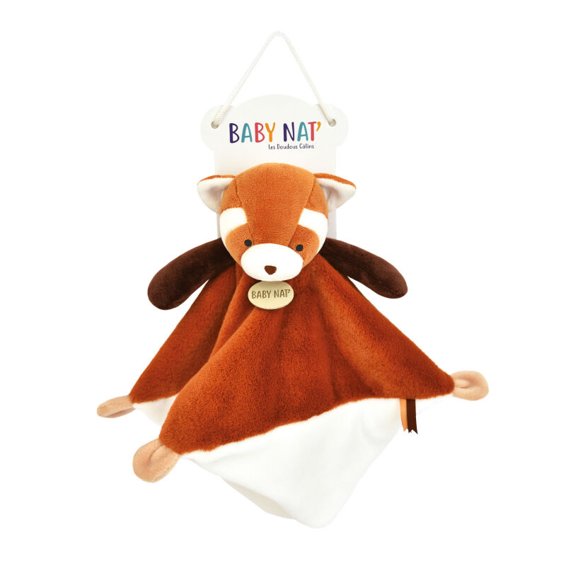 Baby'Nat - Mon petit panda roux - Doudou plat marron blanc 25 cm