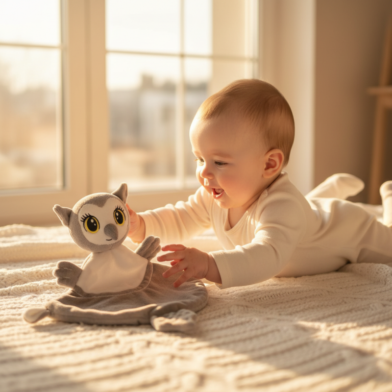 Ce joli doudou plat hibou gris de la marque DOUDOU MALIN sera le compagnon idéal de bébé pour passer des nuits paisibles. Facile à attraper, ce doudou plat hibou tout doux l'accompagnera dès sa naissance.
