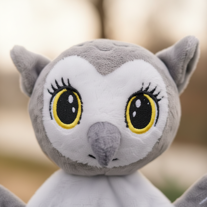 Lisette la chouette, c'est la petite curieuse aux grands yeux ouverts qui aime découvrir tous les secrets de la forêt. Avec sa douceur et son attention, elle fait toujours de belles surprises à ses amis. Et quand bient le moment du câlin, Lisette se blottit contre toi, douce comme une plume et pleine d'amour. Magnifique doudou chouette personnalisable et tout doux de 30 cm ! On l'adore !