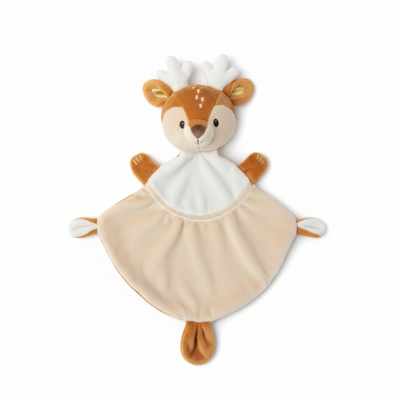 Caractéristiques : Renne / Doudou plat / Beige / Mixte