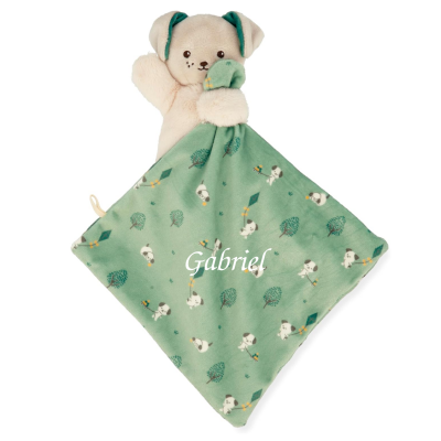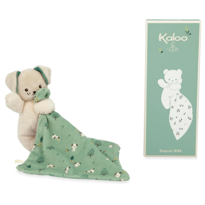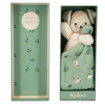 Doudou chien vert Kaloo personnalisable, vendu dans une jolie boîte. 17 cm