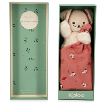 Doudou chien rouge Kaloo personnalisable, vendu dans une jolie boîte. 17 cm