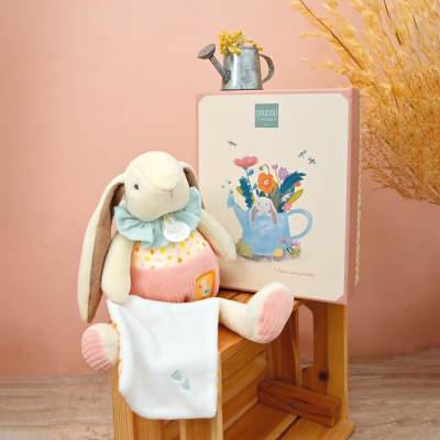 Cette jolie peluche lapin rose de la marque DOUDOU ET COMPAGNIE sera le compagnon idéal de bébé pour de tendres câlins. Une jolie peluche DOUDOU ET COMPAGNIE toute douce à offrir sans modération.