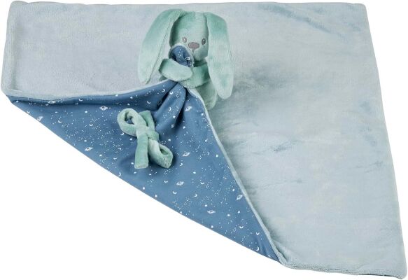 Nattou - Lapidou - Doudou couverture lapin luminescent bleu 50 X 50 cm