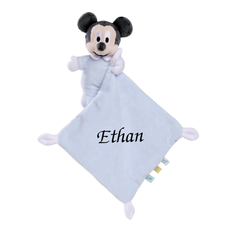 Peluche 10 cm + doudou 15 cm Mickey à personnaliser avec une jolie broderie.