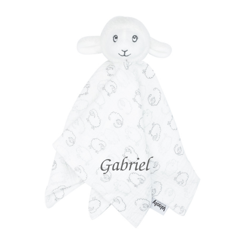 Trois kilos sept - Wooly le mouton - Doudou plat lange blanc 40 cm